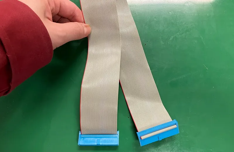 フラットケーブルは複数の配線がきれいに縦に並んで平らなリボン状になったケーブルです。一度に複数の信号を送ることができ、柔らかく柔軟性が高いので一般的には電子機器の内部配線などによく使われています。