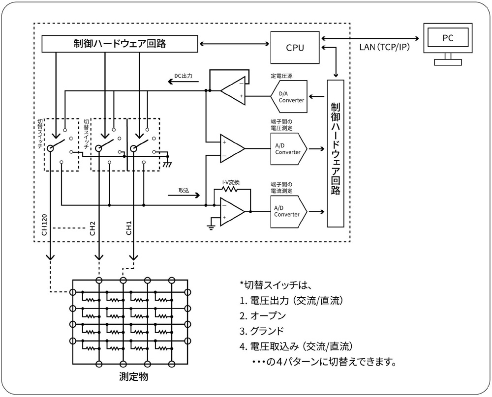 最大120チャンネルの端子を連続して検査を行うことができます。