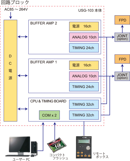 FPDを駆動するために必要な電源と信号を本機1台に搭載しており、駆動データ(検査プログラム)をユーザーが簡単に作製・編集することができます。