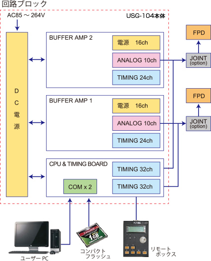 液晶パネルを駆動するために必要な電源と信号を本機一台に搭載しており、駆動データ(検査プログラム)をユーザーが簡単に作製・編集することができます。