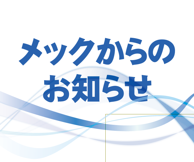 不具合が出ておりましたサイト内の問い合わせフォームが復旧しました。 この期間にお問合せいただいたお客様にはご連絡が遅くなり、ご迷惑をおかけ致しましたことをお詫び申し上げます。 これからも株式会社メックをよろしくお願い申し… 続きを読む お問い合わせフォームが復旧しました