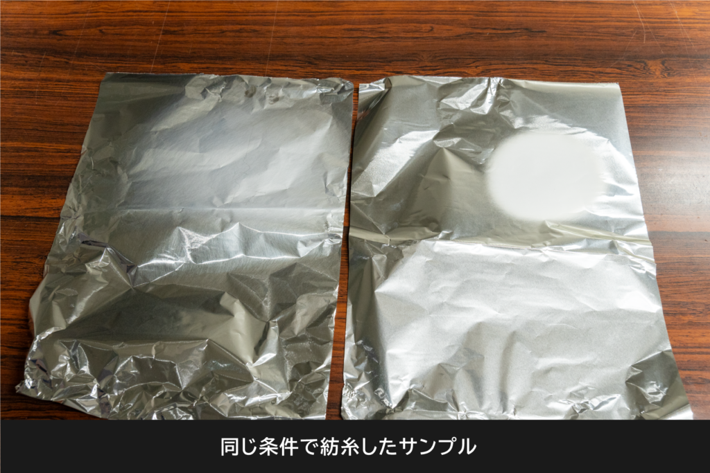 また、簡易エレクトロスピニングシステムは筐体がないので、雰囲気の温湿度の影響があり、環境条件に左右される可能性があると感じました。何度か同じ条件で紡糸を行いましたが、得られたナノファイバーサンプルにばらつきが見られました。再現性を高めていくのは使用者がかなり試行錯誤をする必要があると感じました。