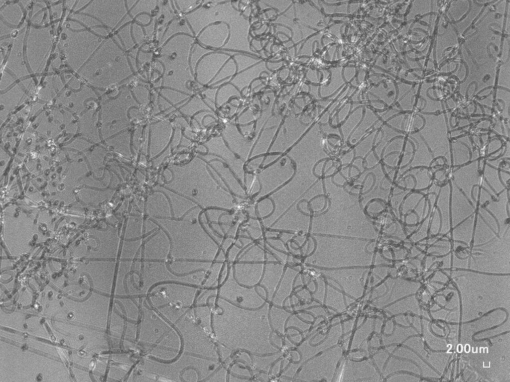 エレクトロスピニングで繊維化させにくいとされるヒアルロン酸ナトリウム(HA)を含むナノファイバーの紡糸に成功しました。