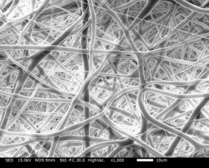 ポリウレタン(PU)ファイバーのチューブ状サンプルを電界紡糸(エレクトロスピニング)法で作製しました。