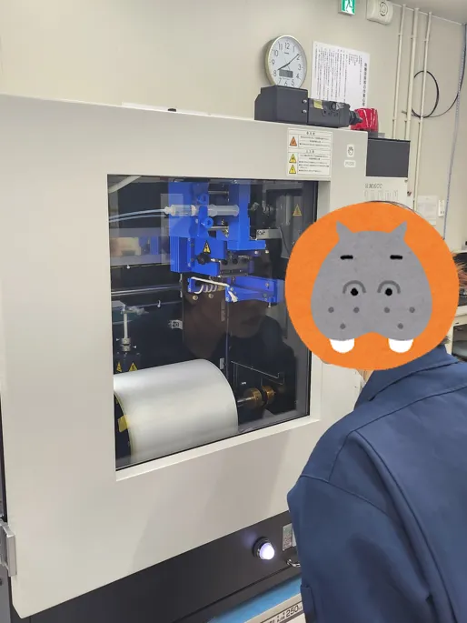 まずはじめに私たちは500umのPVDFの紡糸をするためにどうすればいいのか野上課長に聞きに行きました。