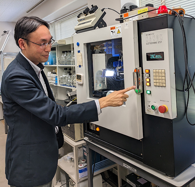 私どもの研究室では、MECCさんのESM-101とNANON-04を使用して癌治療や血液浄化用のメッシュの開発を行っております。特にESM-101はアカデミアでは第一号として設置させていただきました。医療用途ということで高価な薬剤や生理活性物質を含有するのですが、MECCさんの装置は薬剤ロスが小さく、電圧幅も自由に調整可能なので私どもの要求にはとてもマッチしております。また装置の安全性が高く、どんな些細な悩みにも迅速に相談にのっていただけるので、長期的なプロジェクトを進める際にはとてもありがたいです。